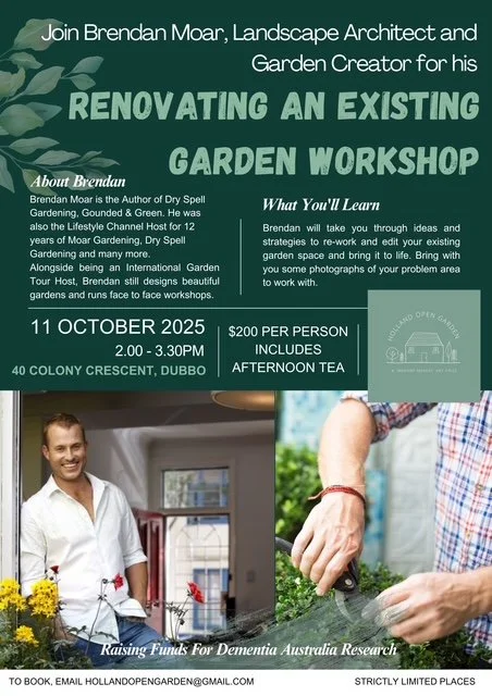 Join Brendan Moar, renowned landscape architect and garden creator, for this garden workshop. Brendan will guide you through ideas and strategies to rework and bring life to your existing garden space. Attendees are encouraged to bring photos of their outdoor area to receive personalised advice.